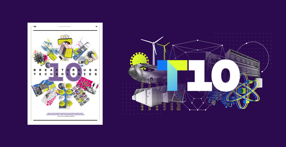 MIT Technology Review has historically prioritized print in its art direction, with commissioned artwork often created exclusively for print specifications and only later adapted for digital use. To better align with the evolving digital direction of the TR10 list, I proposed earlier collaboration with the art team to ensure that digital presentation was considered from the start. I partnered with Art Director Eric Mongeon to create a digital-first version of the list’s artwork and worked to retain the core essence of the original illustrations while adapting them with vibrant colors, digital-friendly elements, and optimized aspect ratios for web.